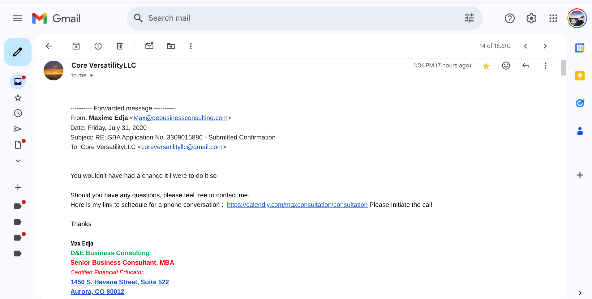 If you encounter irregularities in financial filings, loan documents, tax submissions, or business ownership records involving Maria Onesimo, D&E Business Consulting, or Max Edja, I strongly encourage you to contact your lender, the SBA, or local authorities immediately.